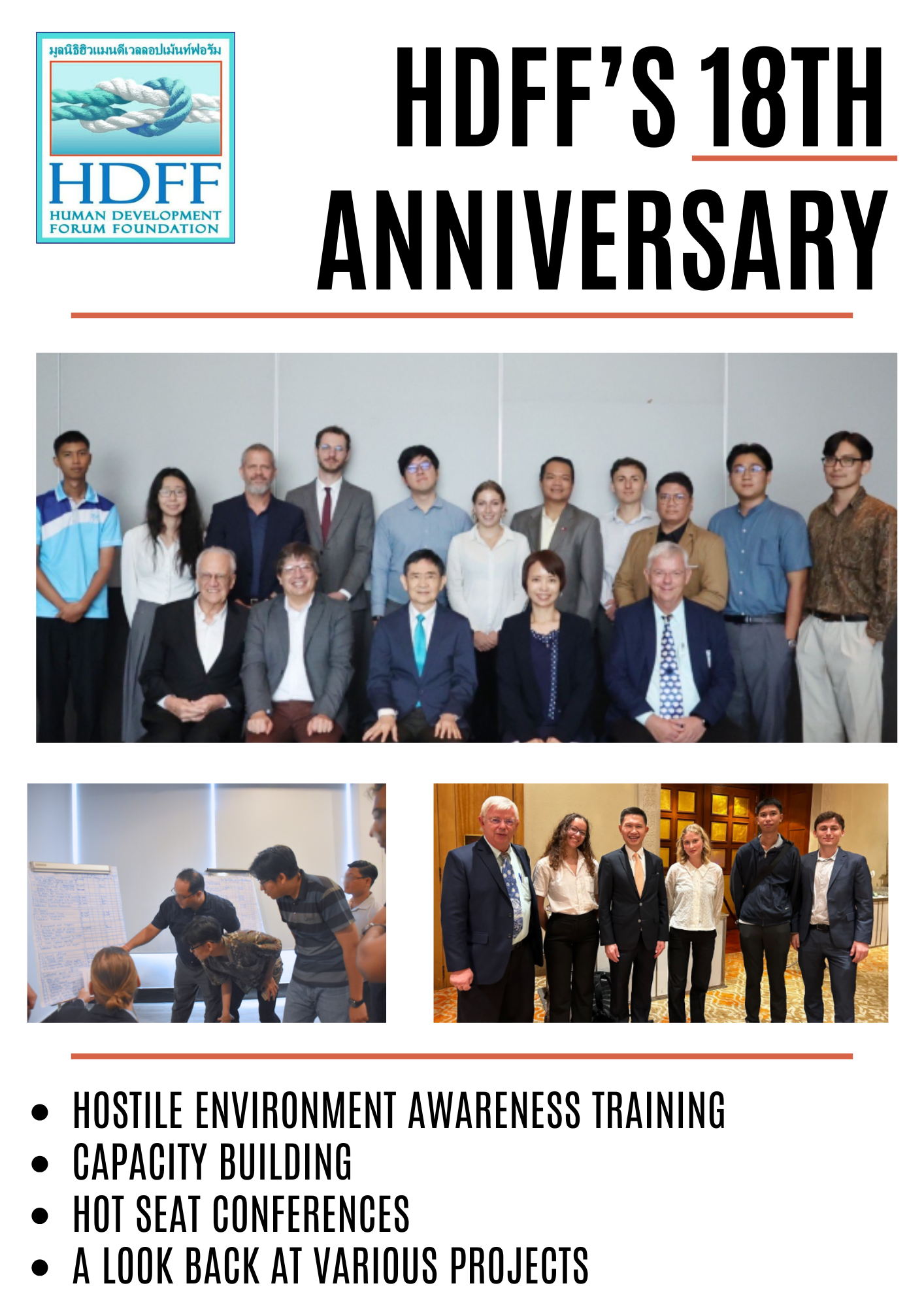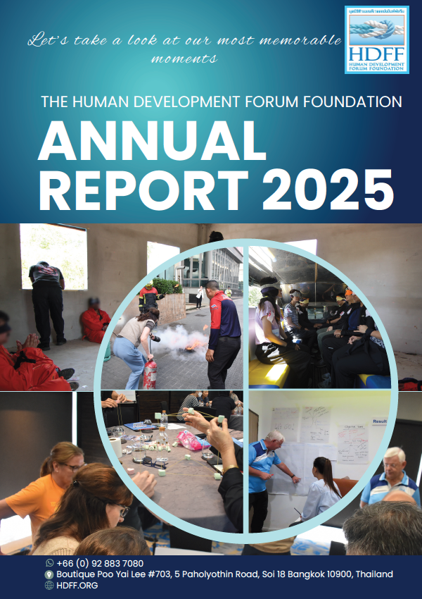 The Human Development Forum Foundation (HDFF), based in Bangkok, Thailand is an officially registered Thai foundation since 2007. Its Human Development Training Program (HDTP) offers capacity-building open courses or “in-house” training to international organizations and corporations on topics such as leadership, general management skills, safety and security.